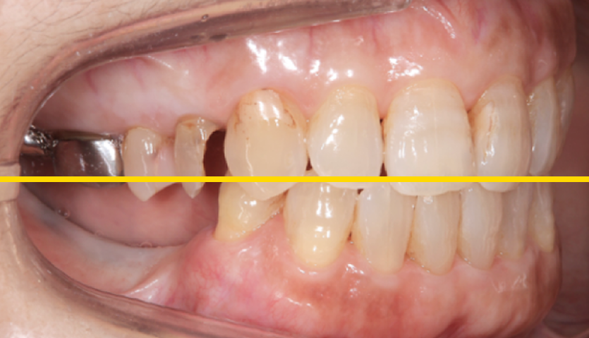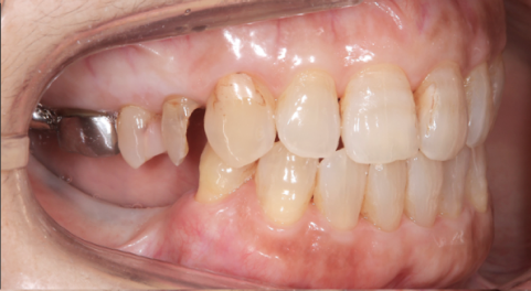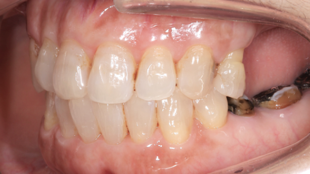 右の奥歯についても歯が伸びてしまっているのでこちらは部分的な矯正治療と歯茎の手術で対応しています。