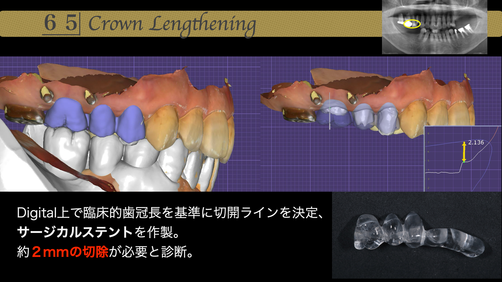 デジタルシミュレーションを駆使したことで、術前の「生理的咬合である」という診断に基づいた精密な治療計画の立案が可能となりました。