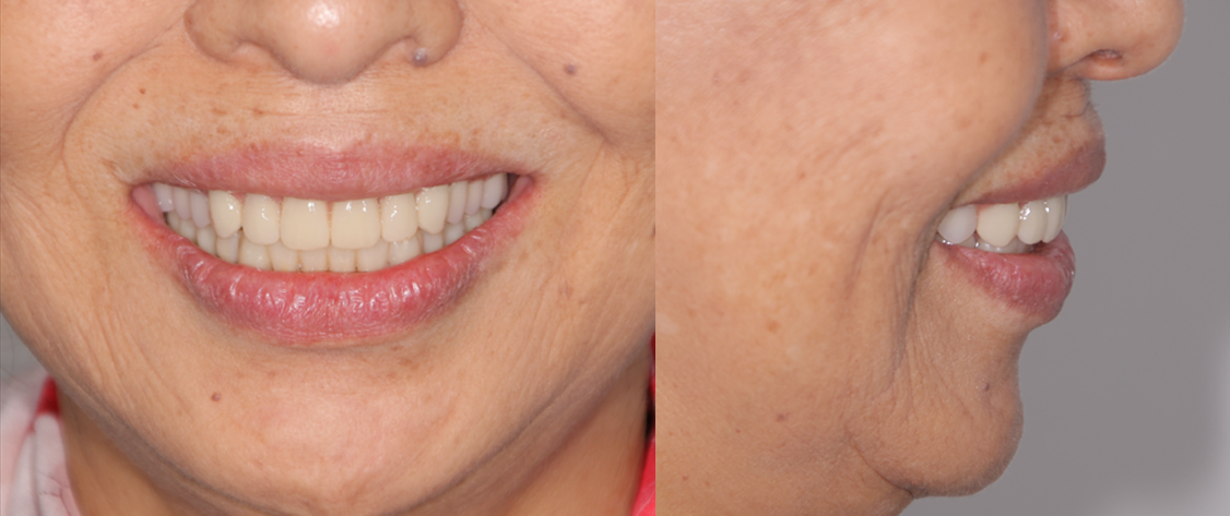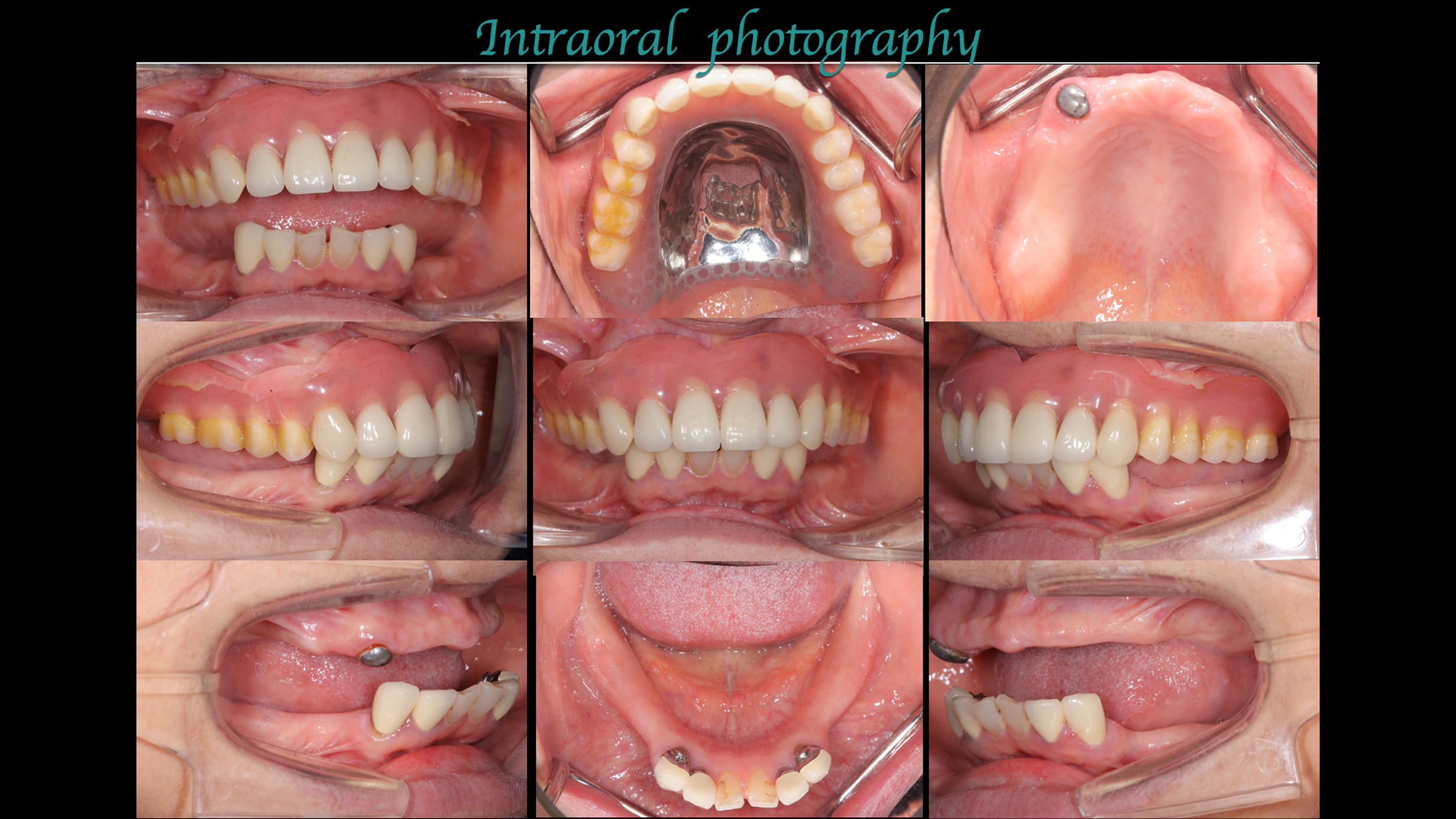 今回は抜歯し「安定して噛める状態」を作ることで同意されたのでこのような治療を行なっております。下の歯は入れ歯より強固なインプラントを選択し、上は総義歯を使用し治療をいたしました。